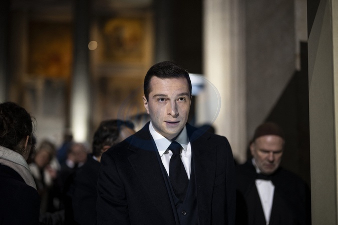 Jordan Bardella lors de la cérémonie d'État pour l'intronisation de Missak Manouchian et de sa femme Mélinee au Panthéon à Paris le 21 février 2024. © Eliot Blondet / Pool / Bestimage Member of French far-right party Rassemblement National (RN) Jordan Bardella during a state ceremony for Missak and Melinee Manouchian's induction into The Pantheon in Paris on February 21, 2024.