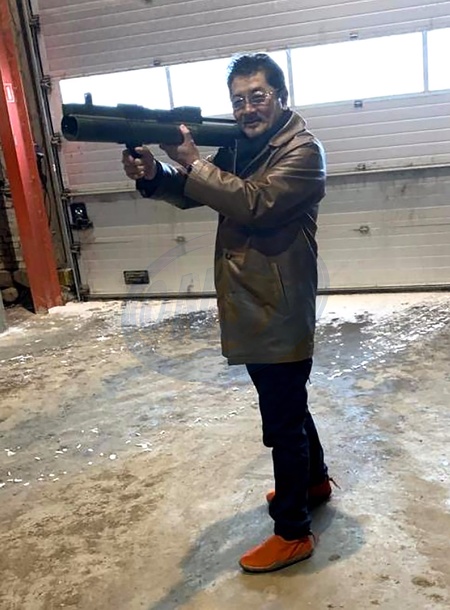 Takeshi Ebisawa, alleged Yakuza leader, charged by the US department of Justice for attempting to traffic nuclear materials from Burma to other countries including Iran. Here pictured handling a rocket launcher at a meeting with US undercover agents., Credit:Avalon.red / Avalon