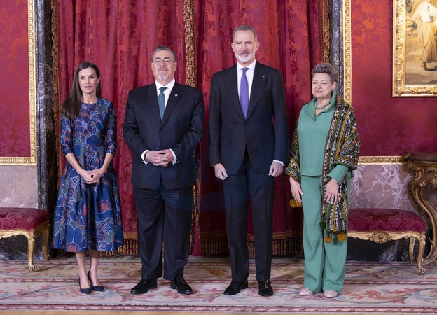 Le roi Felipe VI et la reine Letizia d’Espagne, organisent un déjeuner d'Etat à l'occasion de la visite de Bernardo Arevalo, président du Guatemala, au palais royal à Madrid