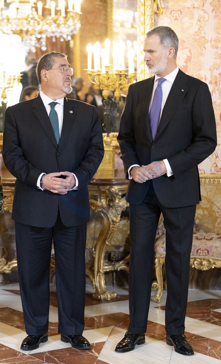 Le roi Felipe VI et la reine Letizia d’Espagne, organisent un déjeuner d'Etat à l'occasion de la visite de Bernardo Arevalo, président du Guatemala, au palais royal à Madrid