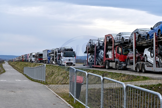 LVIV REGION, UKRAINE - FEBRUARY 22, 2024 - Trucks of Ukrainian carriers remain blocked at the Shehyni crossing on the Ukraine-Poland border, Lviv region, western Ukraine., Credit:Anastasiia Smolienko / Avalon