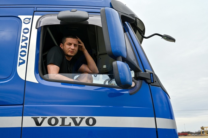 LVIV REGION, UKRAINE - FEBRUARY 22, 2024 - A driver stays in the cabin as trucks of Ukrainian carriers remain blocked at the Shehyni crossing on the Ukraine-Poland border, Lviv region, western Ukraine., Credit:Anastasiia Smolienko / Avalon