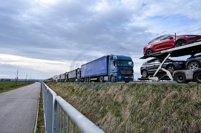 LVIV REGION, UKRAINE - FEBRUARY 22, 2024 - Trucks of Ukrainian carriers remain blocked at the Shehyni crossing on the Ukraine-Poland border, Lviv region, western Ukraine., Credit:Anastasiia Smolienko / Avalon