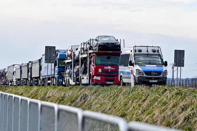 LVIV REGION, UKRAINE - FEBRUARY 22, 2024 - Trucks of Ukrainian carriers remain blocked at the Shehyni crossing on the Ukraine-Poland border, Lviv region, western Ukraine., Credit:Anastasiia Smolienko / Avalon