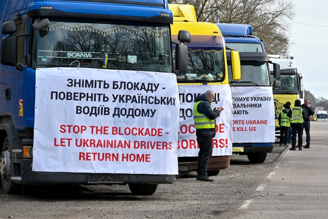 transport, border, blockade, Ukraine, Poland, Ukraine-Poland border, truck, Lviv region, Shehyni, border crossing, checkpoint, protest, strike, tractor unit,