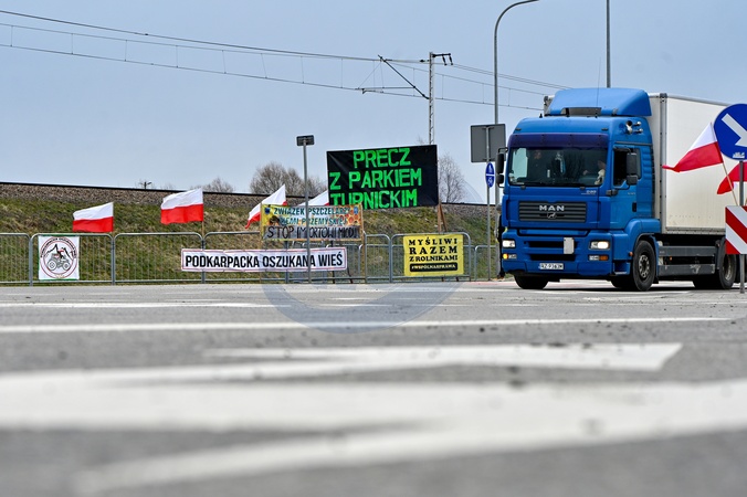 LVIV REGION, UKRAINE - FEBRUARY 22, 2024 - A vehicle is pictured during the blockade of the traffic of Ukrainian trucks by Polish demonstrators at the Shehyni-Medyka border crossing on the Ukraine-Poland border, Lviv region, western Ukraine., Credit:Anastasiia Smolienko / Avalon