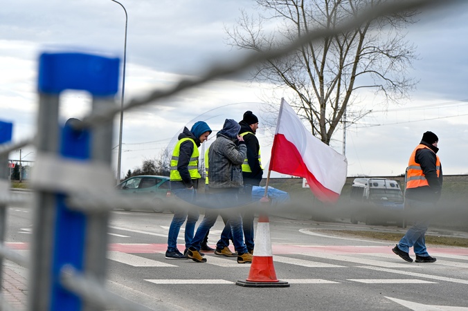 LVIV REGION, UKRAINE - FEBRUARY 22, 2024 - Polish demonstrators block the traffic of Ukrainian trucks at the Shehyni-Medyka border crossing on the Ukraine-Poland border, Lviv region, western Ukraine., Credit:Anastasiia Smolienko / Avalon