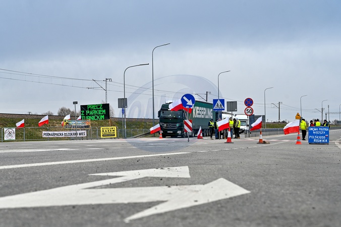 LVIV REGION, UKRAINE - FEBRUARY 22, 2024 - Polish demonstrators block the traffic of Ukrainian trucks at the Shehyni-Medyka border crossing on the Ukraine-Poland border, Lviv region, western Ukraine., Credit:Anastasiia Smolienko / Avalon