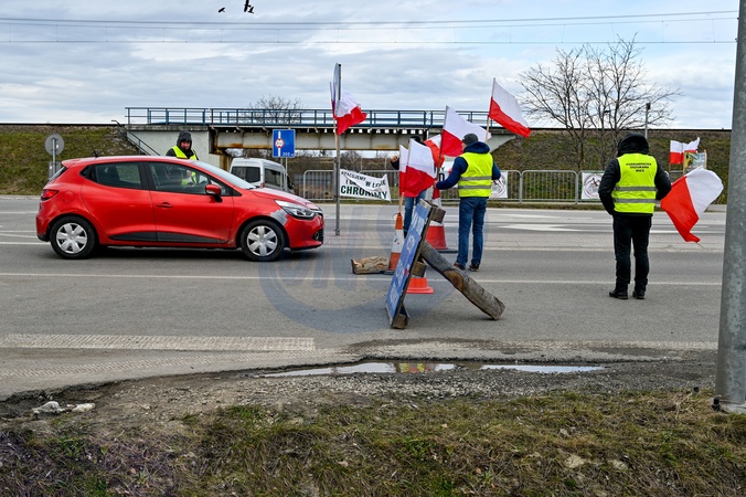 LVIV REGION, UKRAINE - FEBRUARY 22, 2024 - Polish demonstrators carry national flags as they block the traffic of Ukrainian trucks at the Shehyni-Medyka border crossing on the Ukraine-Poland border, Lviv region, western Ukraine., Credit:Anastasiia Smolienko / Avalon