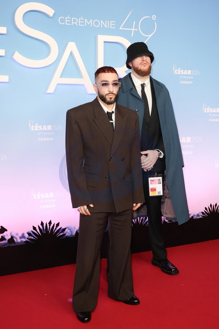 Sofiane Pamart et son manager Guillaume Héritier - Photocall de la 49ème édition de la cérémonie des César à l'Olympia à Paris le 23 février 2024 © Dominique Jacovides / Olivier Borde / Bestimage Arrivals at 49th Cesar Film Awards at L'Olympia on February 23, 2024 in Paris