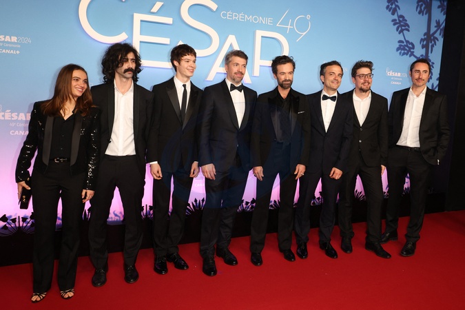 Billie Blain, Andrea Laszlo De Simone, Paul Kircher, Thomas Cailley, Romain Duris, Pierre Guyard, David Cailley and Fabrice Osinki - Photocall de la 49ème édition de la cérémonie des César à l'Olympia à Paris le 23 février 2024 © Dominique Jacovides / Olivier Borde / Bestimage Arrivals at 49th Cesar Film Awards at L'Olympia on February 23, 2024 in Paris
