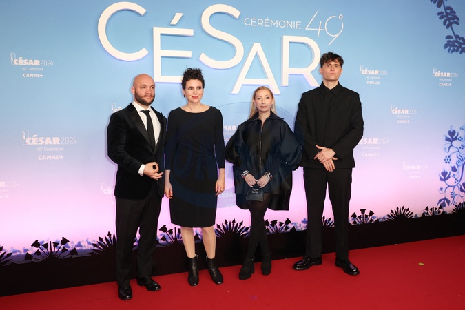 Jean-Baptiste Durand, guest, Anais Bertrand et Raphael Quenard - Photocall de la 49ème édition de la cérémonie des César à l'Olympia à Paris le 23 février 2024 © Dominique Jacovides / Olivier Borde / Bestimage Arrivals at 49th Cesar Film Awards at L'Olympia on February 23, 2024 in Paris