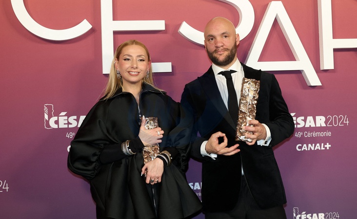 Anais Bertrand, Jean-Baptiste Durand (César du meilleur premier film pour «Chien de la casse») - Photocall des lauréats (press room) lors de la 49ème édition de la cérémonie des César à l'Olympia à Paris le 23 février 2024 © Dominique Jacovides / Olivier Borde / Bestimage Press room during 49th Cesar Film Awards at L'Olympia on February 23, 2024 in Paris