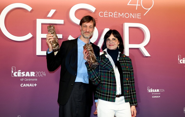 Sebastien Laudenbach et Chiara Malta (César Du Meilleur Film D'animation pour «Linda Veut Du Poulet !») - Photocall des lauréats (press room) lors de la 49ème édition de la cérémonie des César à l'Olympia à Paris le 23 février 2024 © Dominique Jacovides / Olivier Borde / Bestimage Press room during 49th Cesar Film Awards at L'Olympia on February 23, 2024 in Paris