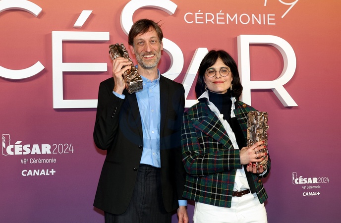 Sebastien Laudenbach et Chiara Malta (César Du Meilleur Film D'animation pour «Linda Veut Du Poulet !») - Photocall des lauréats (press room) lors de la 49ème édition de la cérémonie des César à l'Olympia à Paris le 23 février 2024 © Dominique Jacovides / Olivier Borde / Bestimage Press room during 49th Cesar Film Awards at L'Olympia on February 23, 2024 in Paris