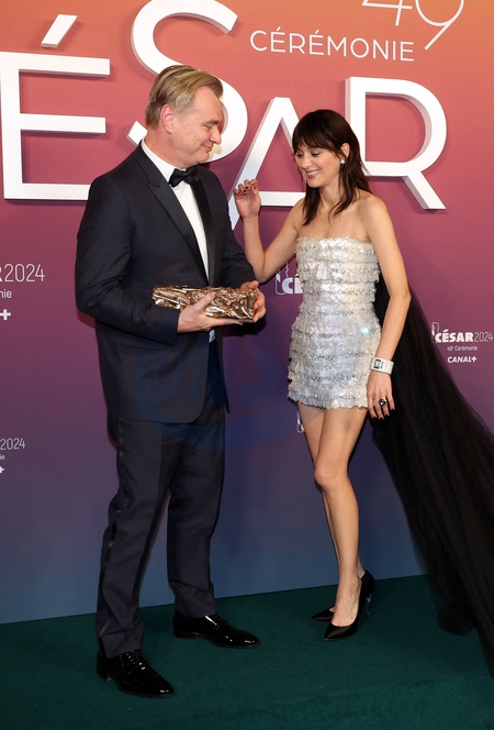 Marion Cotillard, Christopher Nolan (César d'Honneur) - Photocall des lauréats (press room) lors de la 49ème édition de la cérémonie des César à l'Olympia à Paris le 23 février 2024 © Dominique Jacovides / Olivier Borde / Bestimage Press room during 49th Cesar Film Awards at L'Olympia on February 23, 2024 in Paris