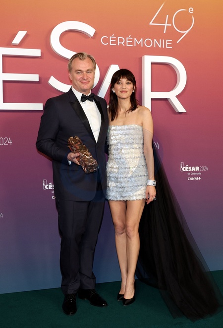 Marion Cotillard, Christopher Nolan (César d'Honneur) - Photocall des lauréats (press room) lors de la 49ème édition de la cérémonie des César à l'Olympia à Paris le 23 février 2024 © Dominique Jacovides / Olivier Borde / Bestimage Press room during 49th Cesar Film Awards at L'Olympia on February 23, 2024 in Paris