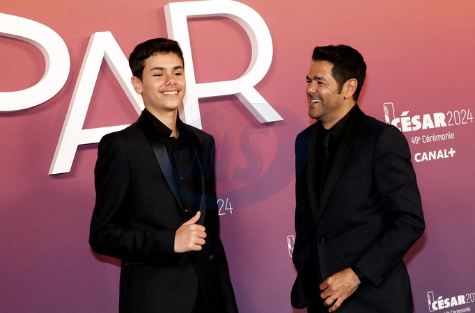 Jamel Debbouze et son fils Léon - Photocall des lauréats (press room) lors de la 49ème édition de la cérémonie des César à l'Olympia à Paris le 23 février 2024 © Dominique Jacovides / Olivier Borde / Bestimage Press room during 49th Cesar Film Awards at L'Olympia on February 23, 2024 in Paris
