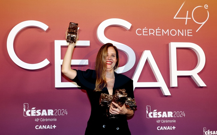 Justine Triet, César de la meilleur réalisation Pour "Anatomie D'une Chute”, César du meilleur scénario original Pour "Anatomie D'une Chute”, César du meilleur film Pour "Anatomie D'une Chute” - Photocall des lauréats (press room) lors de la 49ème édition de la cérémonie des César à l'Olympia à Paris le 23 février 2024 © Dominique Jacovides / Olivier Borde / Bestimage Press room during 49th Cesar Film Awards at L'Olympia on February 23, 2024 in Paris