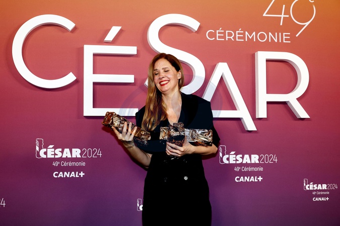 Justine Triet, César de la meilleur réalisation Pour "Anatomie D'une Chute”, César du meilleur scénario original Pour "Anatomie D'une Chute”, César du meilleur film Pour "Anatomie D'une Chute” - Photocall des lauréats (press room) lors de la 49ème édition de la cérémonie des César à l'Olympia à Paris le 23 février 2024 © Dominique Jacovides / Olivier Borde / Bestimage Press room during 49th Cesar Film Awards at L'Olympia on February 23, 2024 in Paris