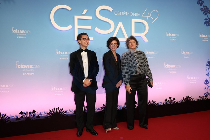 Maxime Saada, Rachida Dati, ministre de la Culture, Véronique Cayla, présidente de l'académie des César - Photocall de la 49ème édition de la cérémonie des César à l'Olympia à Paris le 23 février 2024 © Dominique Jacovides / Olivier Borde / Bestimage Arrivals at 49th Cesar Film Awards at L'Olympia on February 23, 2024 in Paris