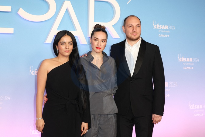 Hafsia Herzi, Iris Kaltenback et Alexis Manenti - Photocall de la 49ème édition de la cérémonie des César à l'Olympia à Paris le 23 février 2024 © Dominique Jacovides / Olivier Borde / Bestimage Arrivals at 49th Cesar Film Awards at L'Olympia on February 23, 2024 in Paris
