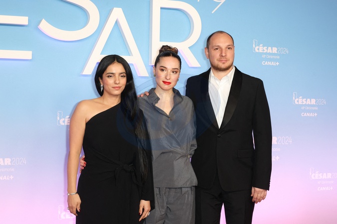 Hafsia Herzi, Iris Kaltenback et Alexis Manenti - Photocall de la 49ème édition de la cérémonie des César à l'Olympia à Paris le 23 février 2024 © Dominique Jacovides / Olivier Borde / Bestimage Arrivals at 49th Cesar Film Awards at L'Olympia on February 23, 2024 in Paris