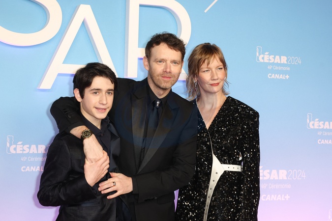 Milo Machado-Graner, Antoine Reinartz et Sandra Hüller - Photocall de la 49ème édition de la cérémonie des César à l'Olympia à Paris le 23 février 2024 © Dominique Jacovides / Olivier Borde / Bestimage Arrivals at 49th Cesar Film Awards at L'Olympia on February 23, 2024 in Paris