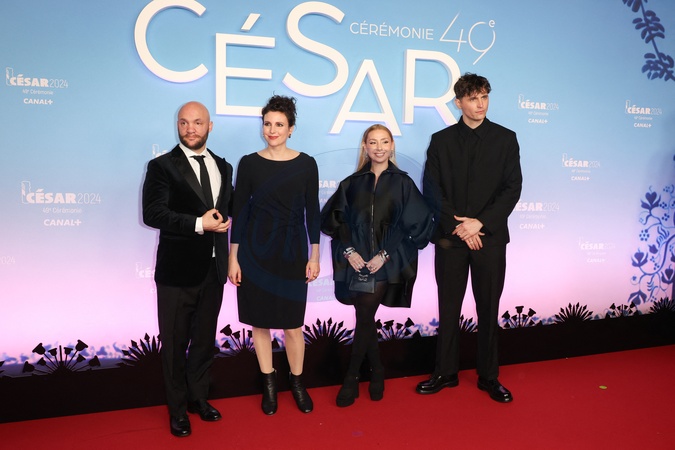 Jean-Baptiste Durand, guest, Anais Bertrand et Raphael Quenard - Photocall de la 49ème édition de la cérémonie des César à l'Olympia à Paris le 23 février 2024 © Dominique Jacovides / Olivier Borde / Bestimage Arrivals at 49th Cesar Film Awards at L'Olympia on February 23, 2024 in Paris