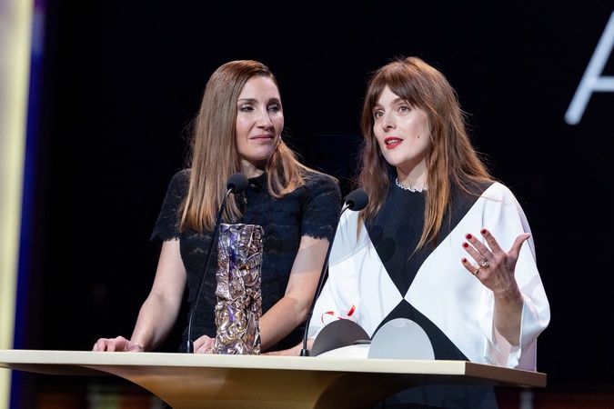 Valérie Donzelli (habillée en Dior et bijoux Dior), Audrey Diwan (César de la meilleure adaptation pour «L'amour Et Les Forêts» - 49ème édition de la cérémonie des César à l'Olympia à Paris le 23 février 2024 © Dominique Jacovides / Olivier Borde / Bestimage 49th Cesar Film Awards at L'Olympia on February 23, 2024 in Paris