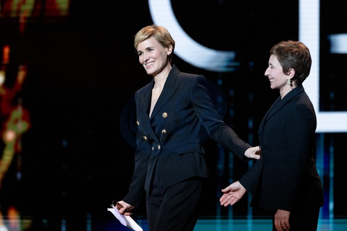 Judith Godrèche, Ariane Ascaride - 49ème édition de la cérémonie des César à l'Olympia à Paris le 23 février 2024 © Dominique Jacovides / Olivier Borde / Bestimage 49th Cesar Film Awards at L'Olympia on February 23, 2024 in Paris