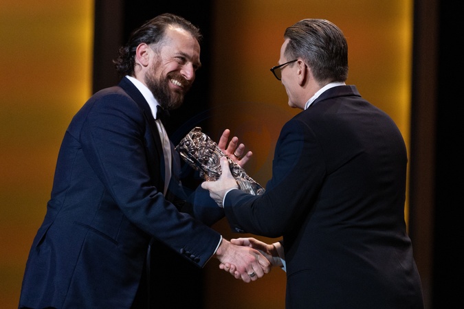 Arieh Worthalter (César du meilleur acteur pour «Le Procès Goldman») et Benoît Magimel - 49ème édition de la cérémonie des César à l'Olympia à Paris le 23 février 2024 © Dominique Jacovides / Olivier Borde / Bestimage 49th Cesar Film Awards at L'Olympia on February 23, 2024 in Paris