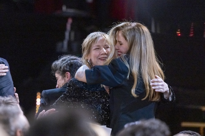 Sandra Hüller et Justine Triet - 49ème édition de la cérémonie des César à l'Olympia à Paris le 23 février 2024 © Dominique Jacovides / Olivier Borde / Bestimage 49th Cesar Film Awards at L'Olympia on February 23, 2024 in Paris