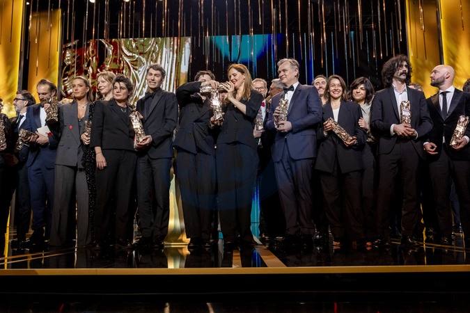 Arieh Worthalter (César du meilleur acteur pour «Le Procès Goldman»), Adèle Exarchopoulos (César de la meilleure actrice dans un second rôle pour «Je Verrai Toujours Vos Visages», Sandra Hüller, César de la meilleure actrice pour Anatomie d'une chute”, Marie-Ange Luciani, David Thion, Dali Benssalah, Justine Triet, César de la meilleur réalisation Pour "Anatomie D'une Chute”, César du meilleur scénario original Pour "Anatomie D'une Chute”, César du meilleur film Pour "Anatomie D'une Chute”, Christopher Nolan (César d'Honneur), Alice Douard (César Du Meilleur Film De Court Métrage De Fiction pour «L'attente»), Andrea Laszlo De Simone (César de la meilleure musique originale pour «Le Règne Animal»)Jean-Baptiste Durand (César du meilleur premier film pour «Chien de la casse») - 49ème édition de la cérémonie des César à l'Olympia à Paris le 23 février 2024 © Dominique Jacovides / Olivier Borde / Bestimage 49th Cesar Film Awards at L'Olympia on February 23, 2024 in Paris