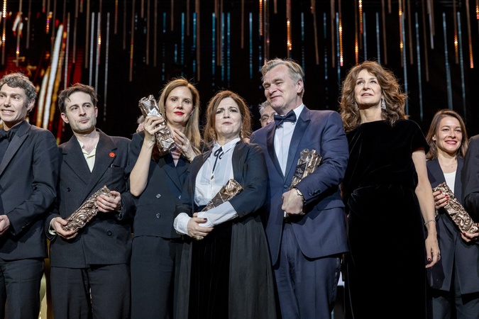 David Thion, Dali Benssalah, Justine Triet, César de la meilleur réalisation Pour "Anatomie D'une Chute”, César du meilleur scénario original Pour "Anatomie D'une Chute”, César du meilleur film Pour "Anatomie D'une Chute”, Agnès Jaoui (César d'Honneur), Christopher Nolan (César d'Honneur), Valérie Lemercier, Alice Douard (César Du Meilleur Film De Court Métrage De Fiction pour «L'attente») - 49ème édition de la cérémonie des César à l'Olympia à Paris le 23 février 2024 © Dominique Jacovides / Olivier Borde / Bestimage 49th Cesar Film Awards at L'Olympia on February 23, 2024 in Paris