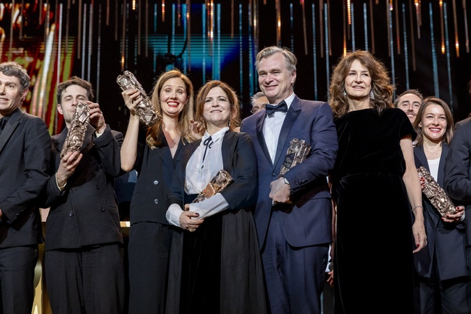 David Thion, Dali Benssalah, Justine Triet, César de la meilleur réalisation Pour "Anatomie D'une Chute”, César du meilleur scénario original Pour "Anatomie D'une Chute”, César du meilleur film Pour "Anatomie D'une Chute”, Agnès Jaoui (César d'Honneur), Christopher Nolan (César d'Honneur), Valérie Lemercier, Alice Douard (César Du Meilleur Film De Court Métrage De Fiction pour «L'attente») - 49ème édition de la cérémonie des César à l'Olympia à Paris le 23 février 2024 © Dominique Jacovides / Olivier Borde / Bestimage 49th Cesar Film Awards at L'Olympia on February 23, 2024 in Paris