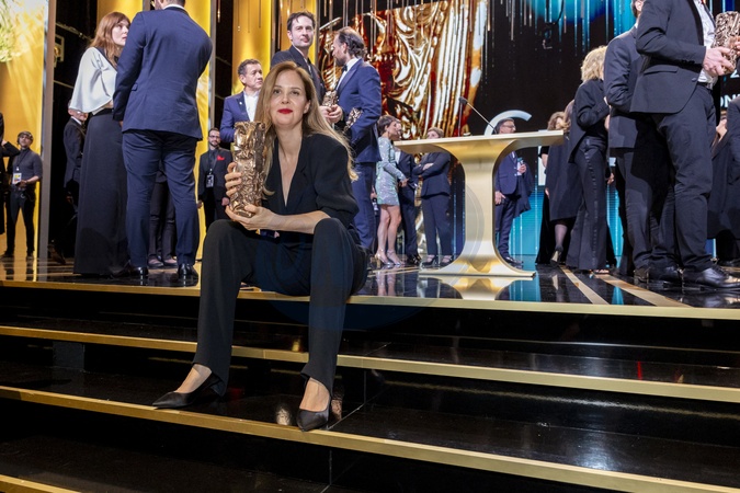 Justine Triet, César de la meilleur réalisation Pour "Anatomie D'une Chute”, César du meilleur scénario original Pour "Anatomie D'une Chute”, César du meilleur film Pour "Anatomie D'une Chute” - 49ème édition de la cérémonie des César à l'Olympia à Paris le 23 février 2024 © Dominique Jacovides / Olivier Borde / Bestimage 49th Cesar Film Awards at L'Olympia on February 23, 2024 in Paris