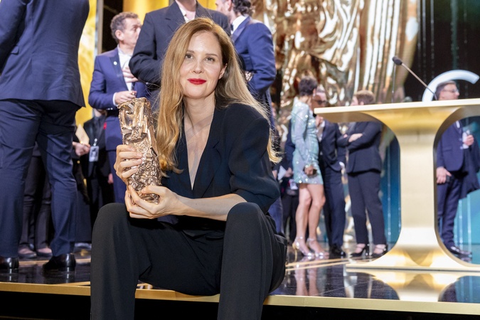 Justine Triet, César de la meilleur réalisation Pour "Anatomie D'une Chute”, César du meilleur scénario original Pour "Anatomie D'une Chute”, César du meilleur film Pour "Anatomie D'une Chute” - 49ème édition de la cérémonie des César à l'Olympia à Paris le 23 février 2024 © Dominique Jacovides / Olivier Borde / Bestimage 49th Cesar Film Awards at L'Olympia on February 23, 2024 in Paris