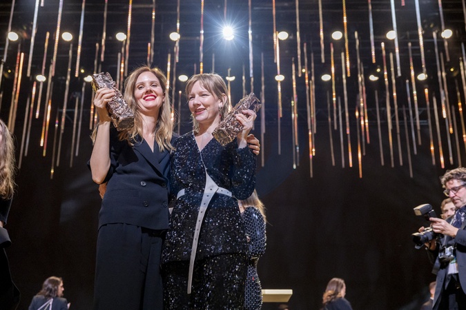 Sandra Hüller, César de la meilleure actrice pour Anatomie d'une chute” et Justine Triet, César de la meilleur réalisation Pour "Anatomie D'une Chute”, César du meilleur scénario original Pour "Anatomie D'une Chute”, César du meilleur film Pour "Anatomie D'une Chute” - 49ème édition de la cérémonie des César à l'Olympia à Paris le 23 février 2024 © Dominique Jacovides / Olivier Borde / Bestimage 49th Cesar Film Awards at L'Olympia on February 23, 2024 in Paris
