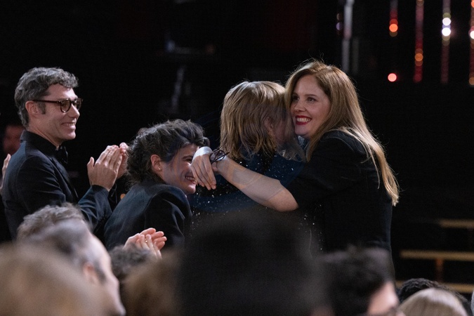 Sandra Hüller et Justine Triet - 49ème édition de la cérémonie des César à l'Olympia à Paris le 23 février 2024 © Dominique Jacovides / Olivier Borde / Bestimage 49th Cesar Film Awards at L'Olympia on February 23, 2024 in Paris