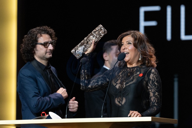 Kaouther Ben Hania, César du meilleur film documentaire pour "Les filles d'Olfa” - 49ème édition de la cérémonie des César à l'Olympia à Paris le 23 février 2024 © Dominique Jacovides / Olivier Borde / Bestimage 49th Cesar Film Awards at L'Olympia on February 23, 2024 in Paris