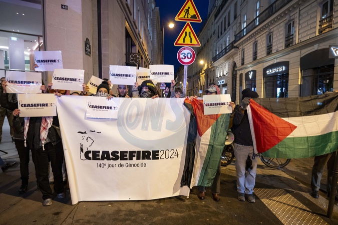 Rassemblement en face de l'Olympia à l’occasion de la 49ème édition de la cérémonie des César 2024 contre les violences sexistes et sexuelles dans le monde du cinéma, suite aux différentes prises de paroles.