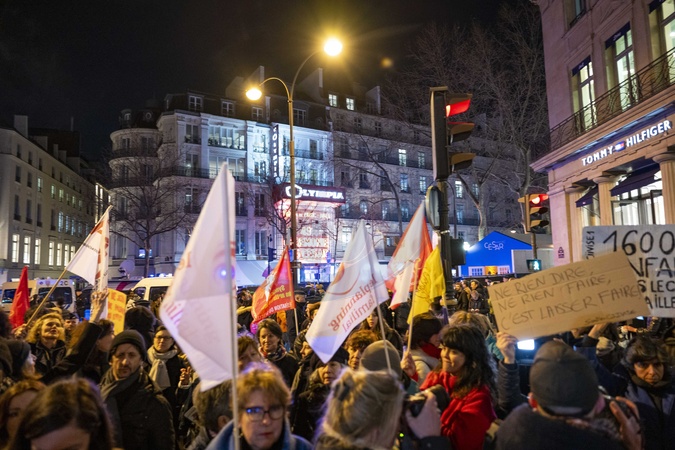 - Rassemblement en face de l'Olympia à initiative de la CGT spectacle à l'occasion de la 49ème édition de la cérémonie des César 2024 contre les violences sexistes et sexuelles dans le monde du cinéma, suite aux différentes prises de paroles. Paris le 23 février 2024. © Pierre Perusseau / Bestimage Rally in front of the Olympia at the initiative of the CGT spectacle on the occasion of the 49th edition of the César 2024 ceremony against sexist and sexual violence in the world of cinema, following the various speeches. Paris on February 23, 2024.