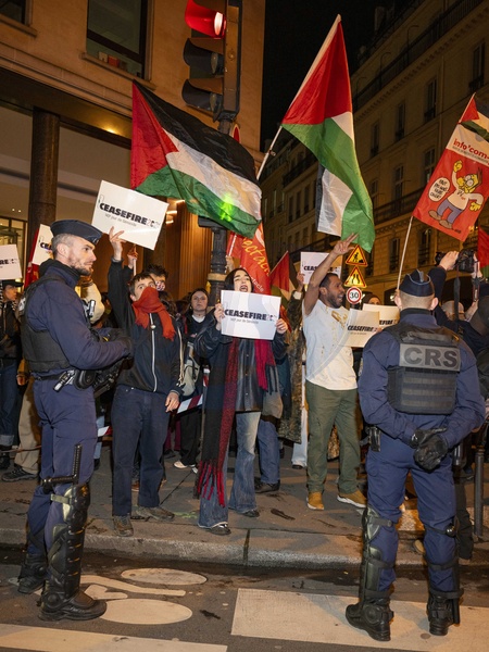 Rassemblement en face de l'Olympia à l’occasion de la 49ème édition de la cérémonie des César 2024 contre les violences sexistes et sexuelles dans le monde du cinéma, suite aux différentes prises de paroles.