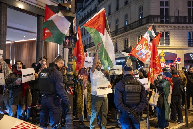 Rassemblement en face de l'Olympia à l’occasion de la 49ème édition de la cérémonie des César 2024 contre les violences sexistes et sexuelles dans le monde du cinéma, suite aux différentes prises de paroles.