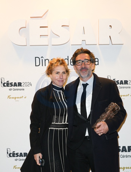 Stéphane Taillasson, César des meilleurs décors Pour Les Trois Mousquetaires (Partie 1 : D'artagnan / Partie 2 : Milady)” avec sa femme - Photocall de la 49ème édition de la cérémonie des César au Fouquet's à Paris Le 23 fevrier 2024 © Coadic Guirec / Bestimage