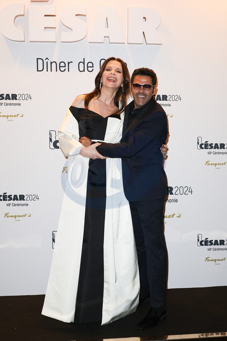 Juliette Binoche et Jamel Debbouze - Photocall de la 49ème édition de la cérémonie des César au Fouquet's à Paris Le 23 fevrier 2024 © Coadic Guirec / Bestimage