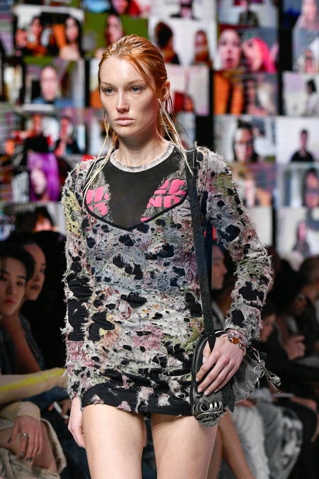 Défilé de mode Diesel automne / hiver 2024-2025 lors de la Fashion Week de Milan (MFW) le 21 février 2024 - Diesel - Models On Catwalk during Milan Fashion Week 2024 Ready To Wear For Fall Winter Fashion Show. Woman Women, Defile, Fashion Show Runway Collection, Pret A Porter, Modelwear, Modeschau Laufsteg Milano, Model, Fashion, Style, Look, Fashion Show, Runway, Catwalk