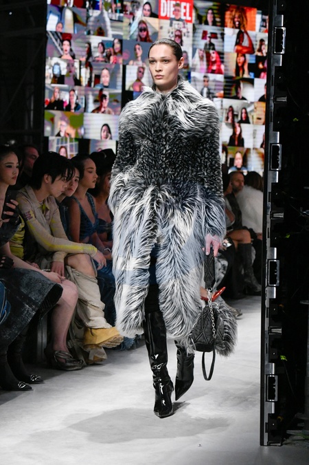 Défilé de mode Diesel automne / hiver 2024-2025 lors de la Fashion Week de Milan (MFW) le 21 février 2024 - Diesel - Models On Catwalk during Milan Fashion Week 2024 Ready To Wear For Fall Winter Fashion Show. Woman Women, Defile, Fashion Show Runway Collection, Pret A Porter, Modelwear, Modeschau Laufsteg Milano, Model, Fashion, Style, Look, Fashion Show, Runway, Catwalk