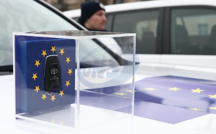 KYIV, UKRAINE - FEBRUARY 24, 2024 - The keys in a transparent box are pictured during the ceremony to convey combat cars to the front line in Sofiiska Square, Kyiv, capital of Ukraine., Credit:Volodymyr Tarasov / Avalon